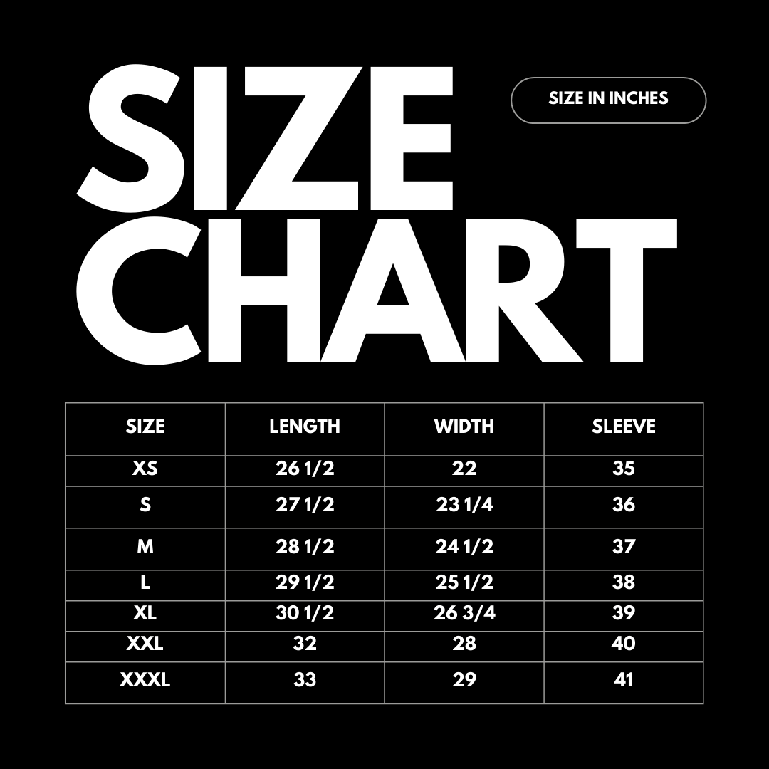 See sizing chart for measurements as sizing can’t be changed after purchase.